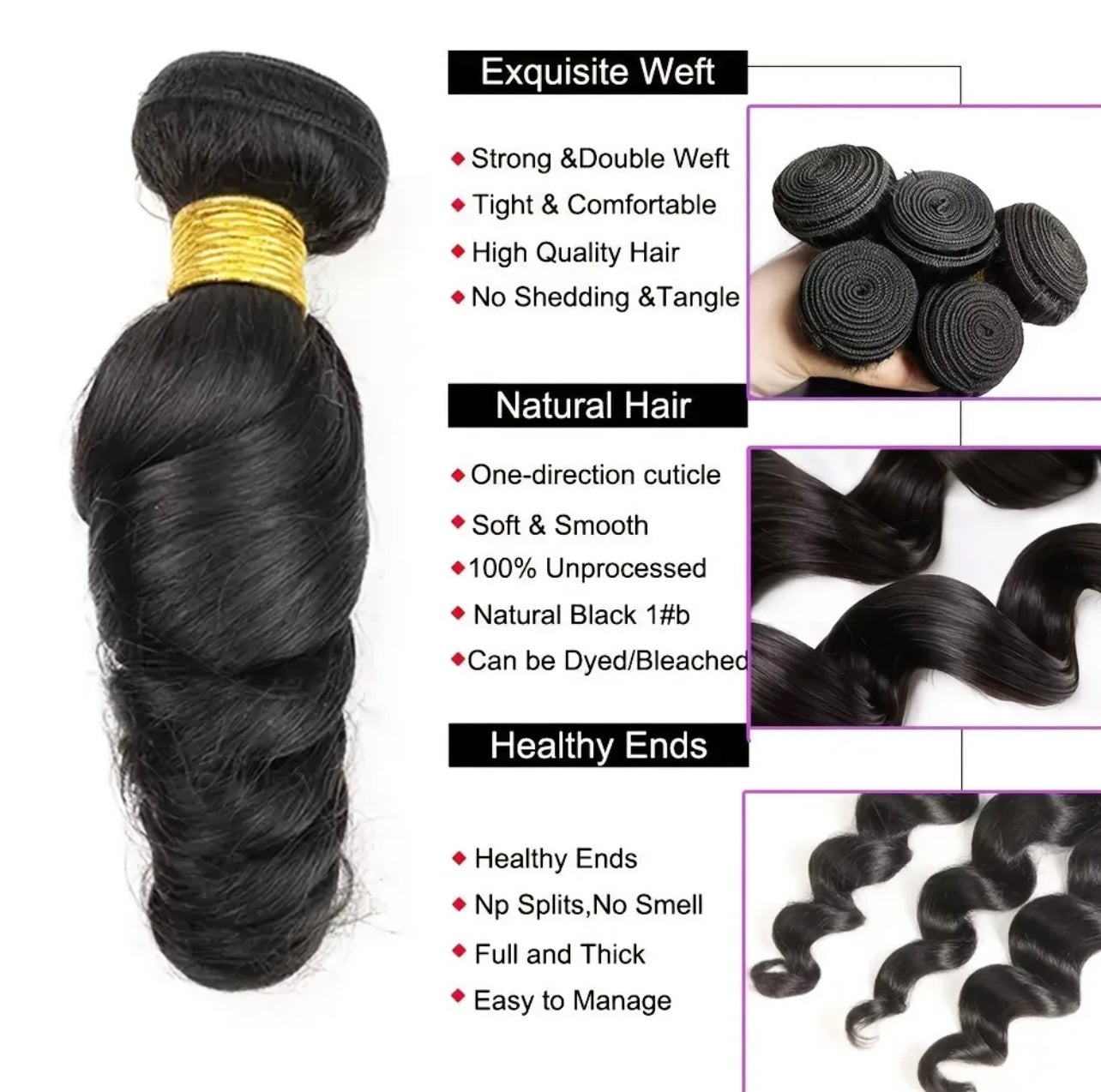 This beautiful texture can be worn in its natural state, straightened or curled. Out of ALL the textures we offer this is a favorite. You can wet this hair also for a natural wavy look. This texture is so versatile, even after straightening it will revert back to original state. You can't go wrong with Mink Loosewave! Can be colored or bleached by a professional without damaging quality.